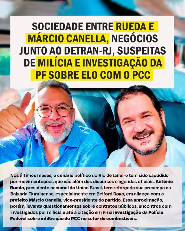 Reportagem da Revista Oeste revelou que Rueda esteve em Belford Roxo para encontros políticos ao